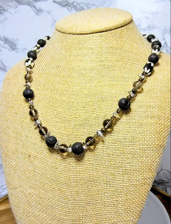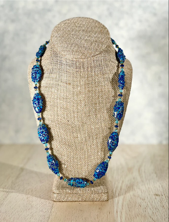 I utilize all kinds of crystals including Swarovski and Austrian. Many precious and semi-precious beads, various minerals and agates, coral (which was harvested already dead), lapis, malachite, freshwater pearls, aquamarine, apatite, turquoise, amethyst and too many others to mention, go into my work. All metals including clasps, chains, spacers…are either .925 (sterling silver), .999 (fine silver) or gold plated which all meet industry standards for purity and in the case of gold plate, the thickness of gold. The fine silver is only present in pieces which are created from Art Clay Silver or PMC which I will explain further.