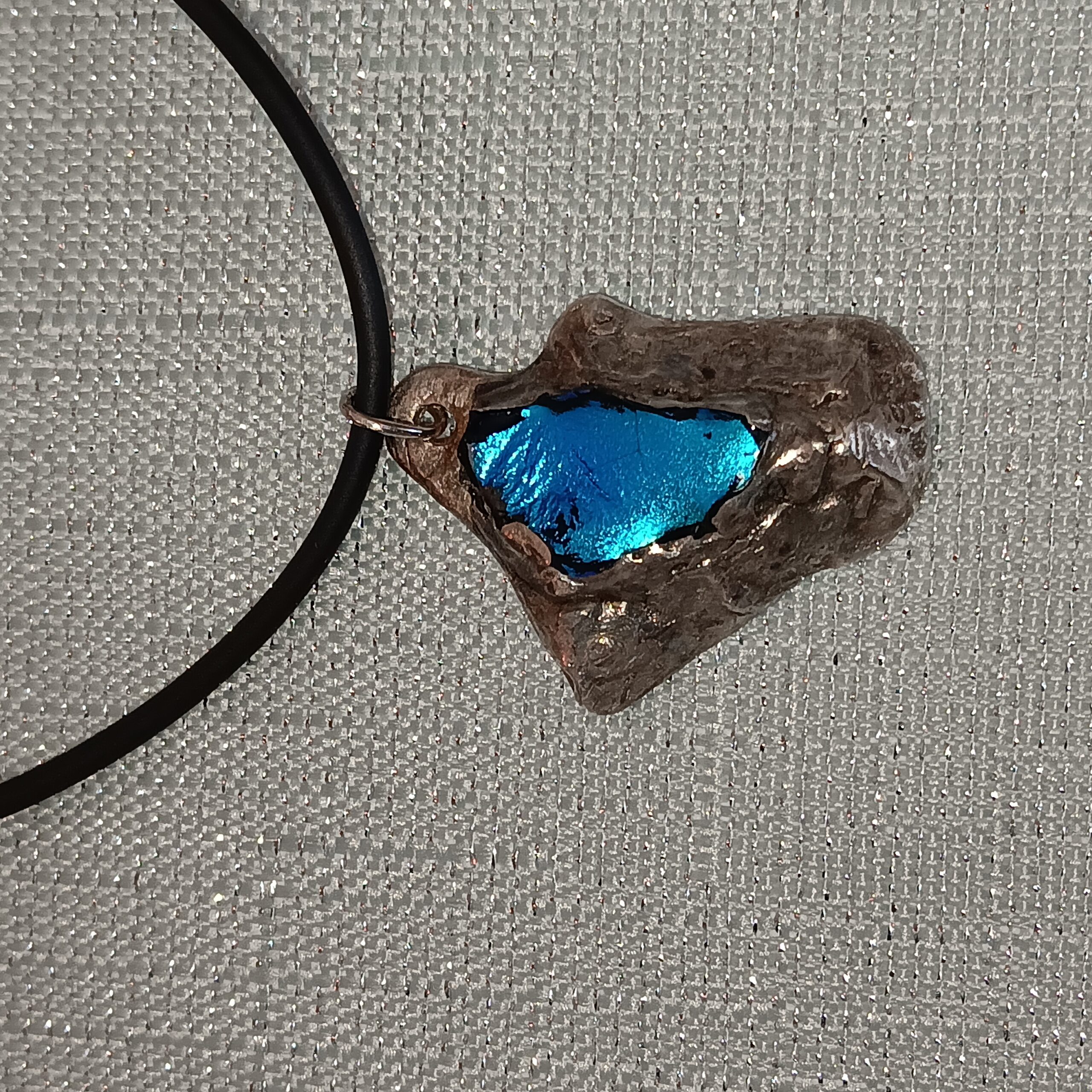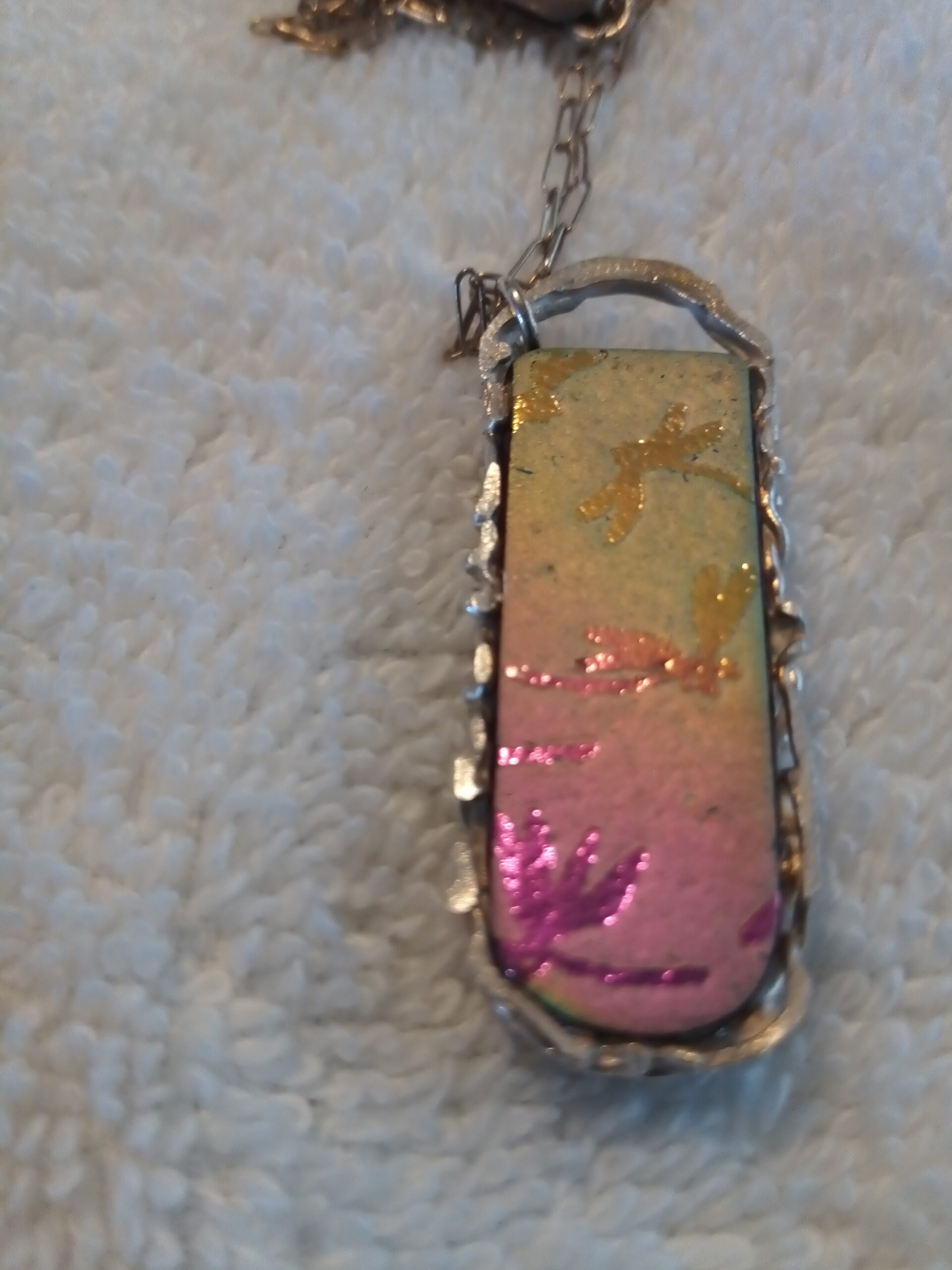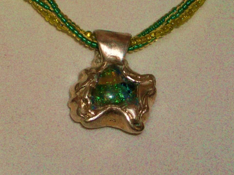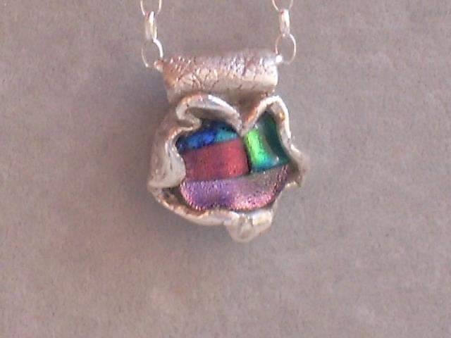 Art Clay pendant w/ dichroic glass and cubic zirconia