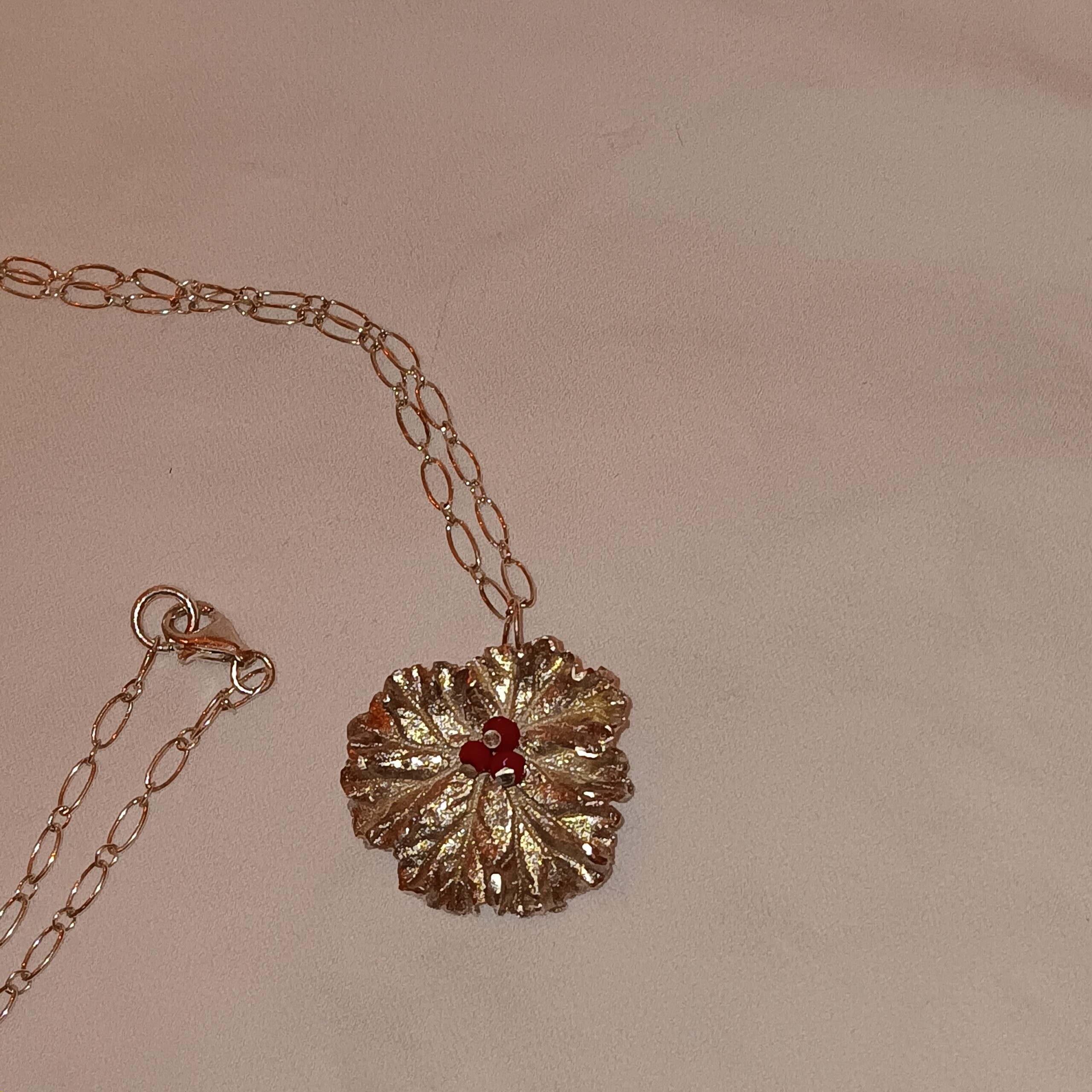 Art Clay Silver pendant ‘flower’ w/ blues and yellows in dichroic glass
