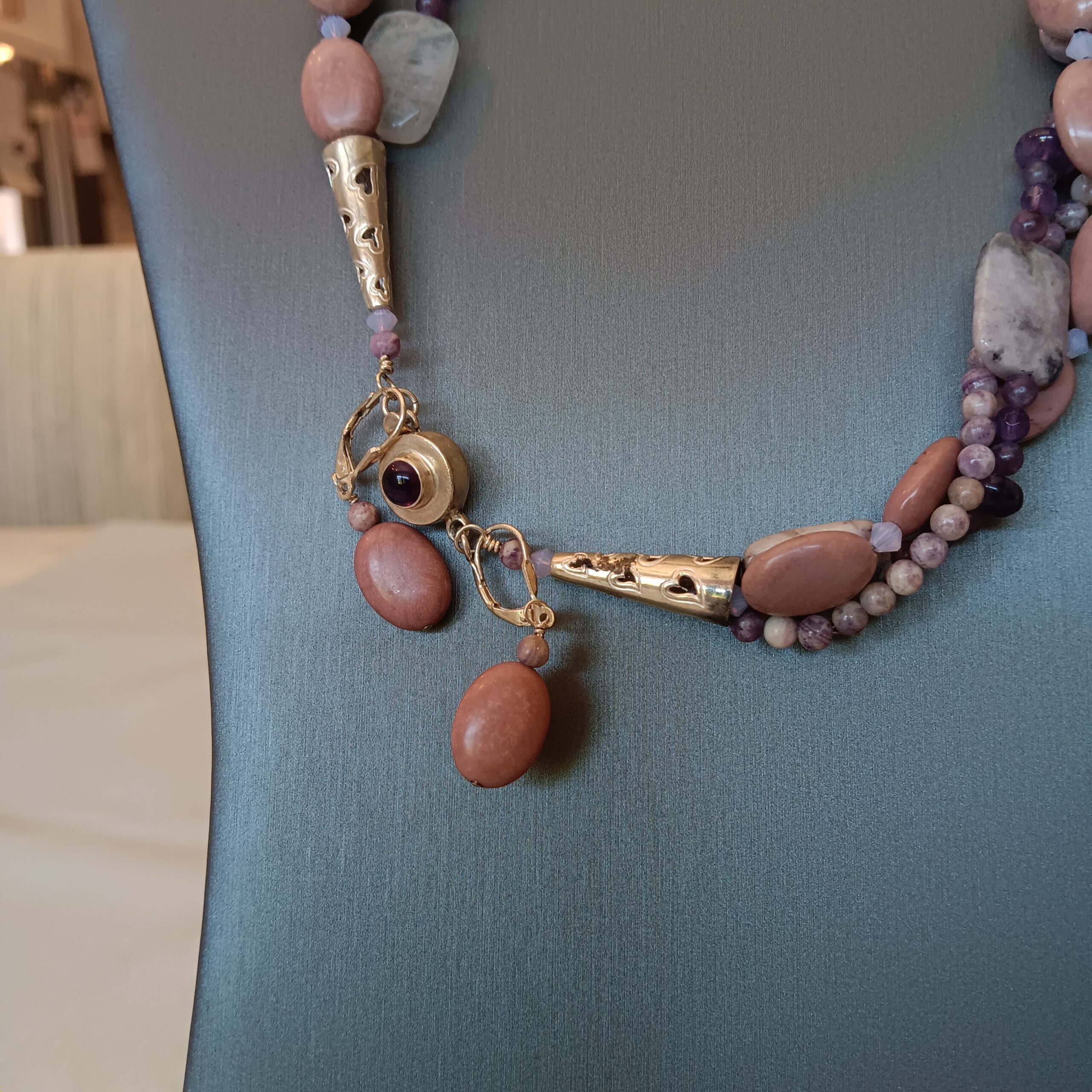 My materials come primarily from the Tucson Gem and Mineral show where I have access to beads and other components from around the world.