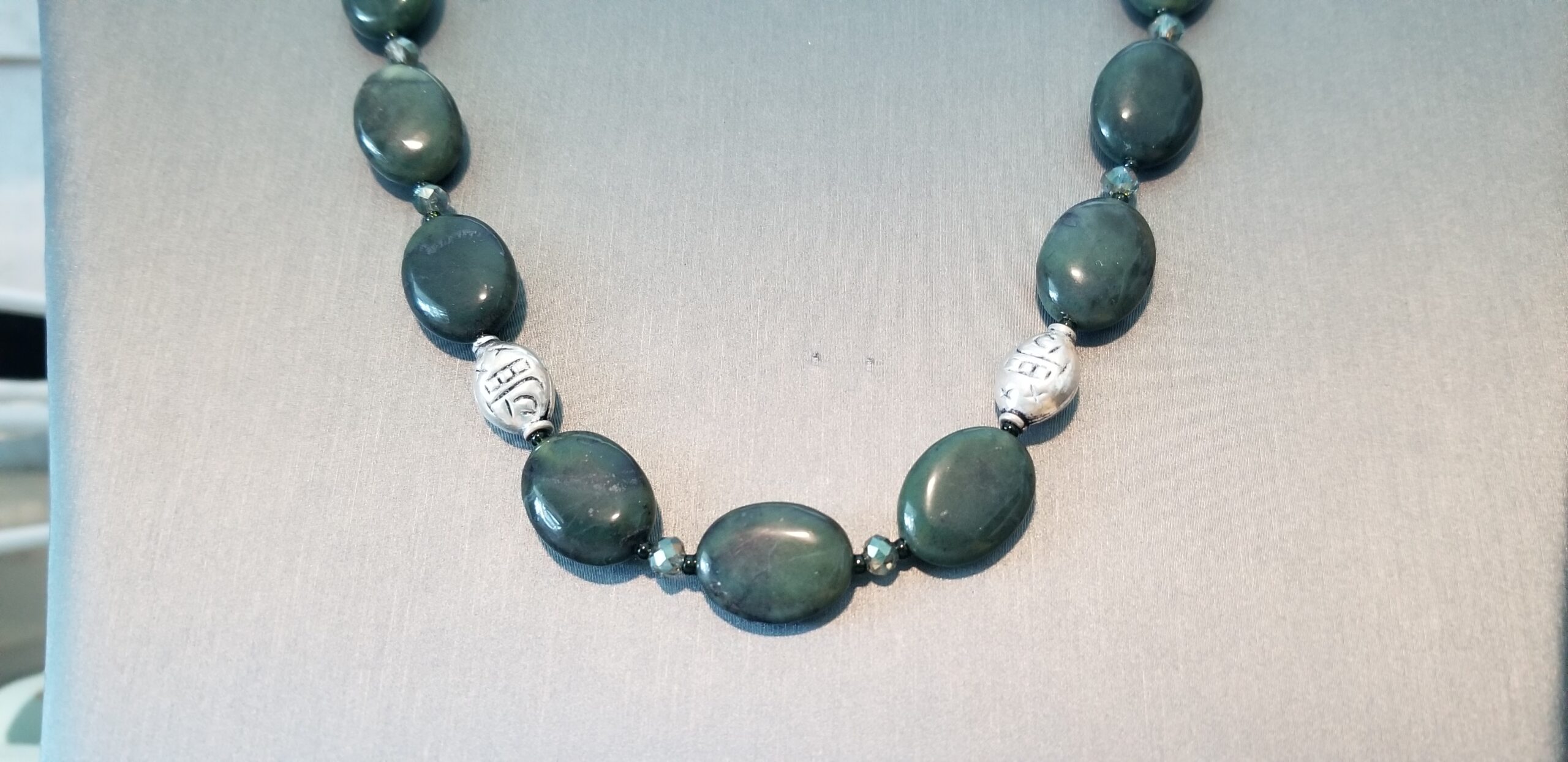 My materials come primarily from the Tucson Gem and Mineral show where I have access to beads and other components from around the world.