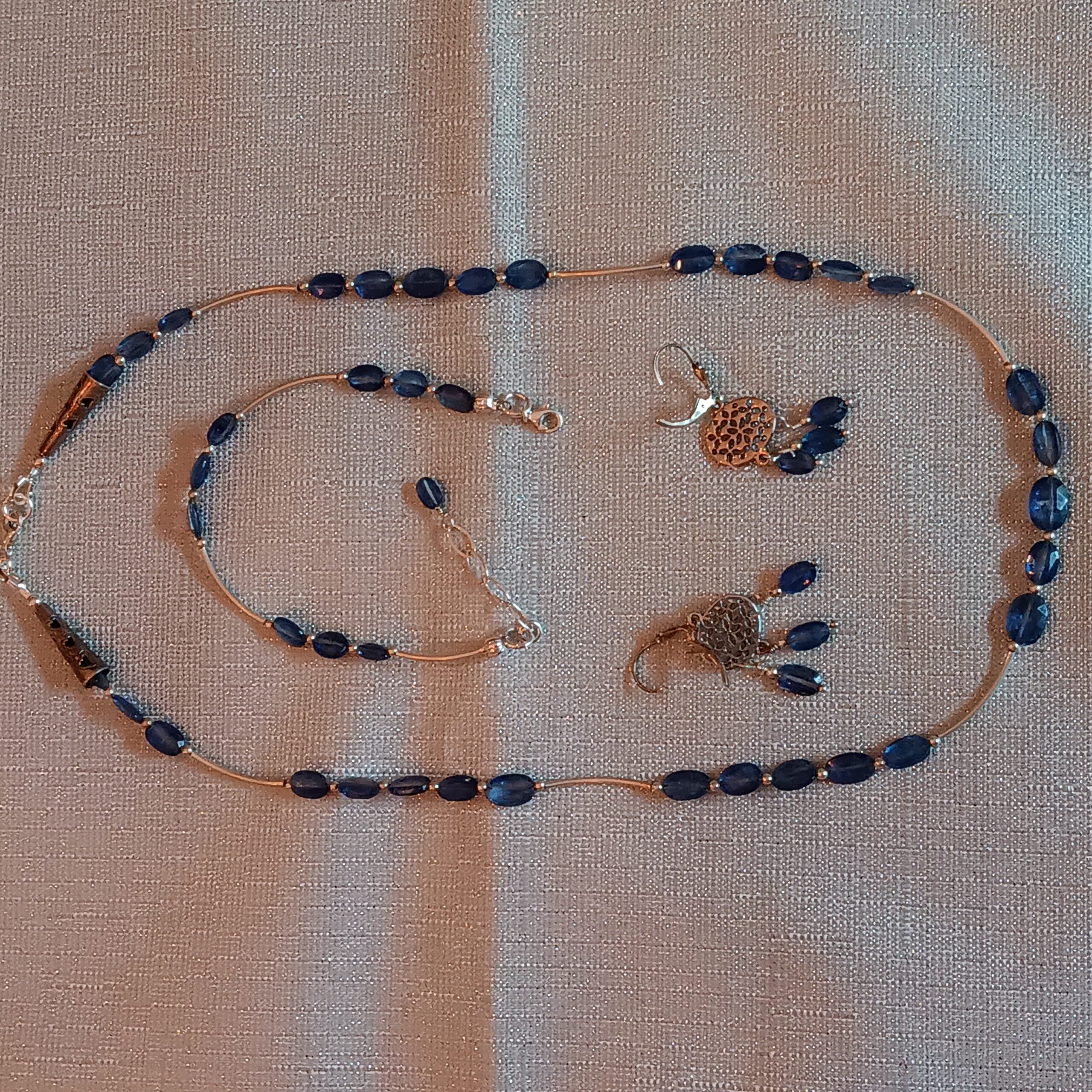 Lapis, turquoise, gold plated metals in necklace and earrings