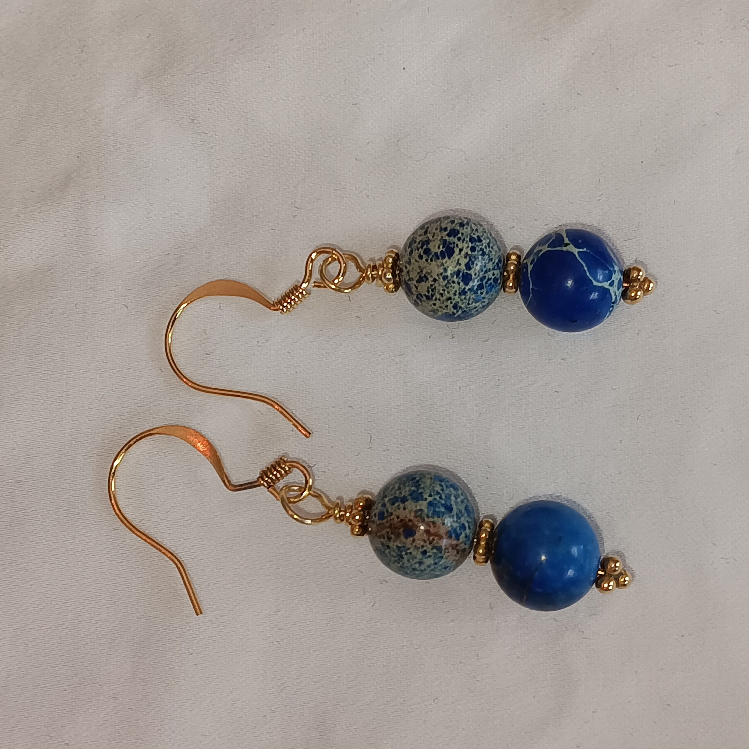 Lapis, turquoise, gold plated metals in necklace and earrings
