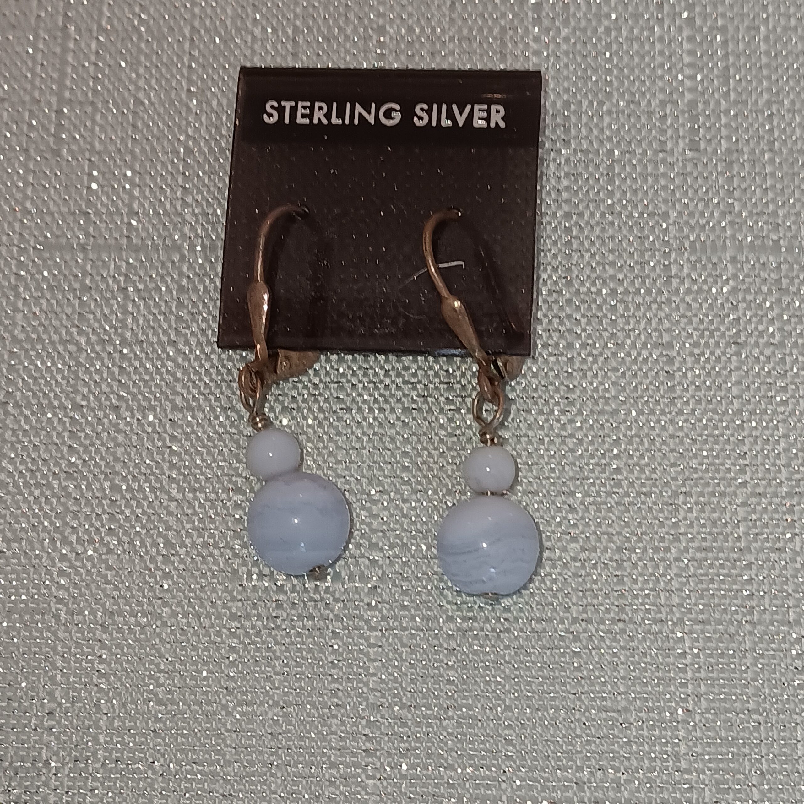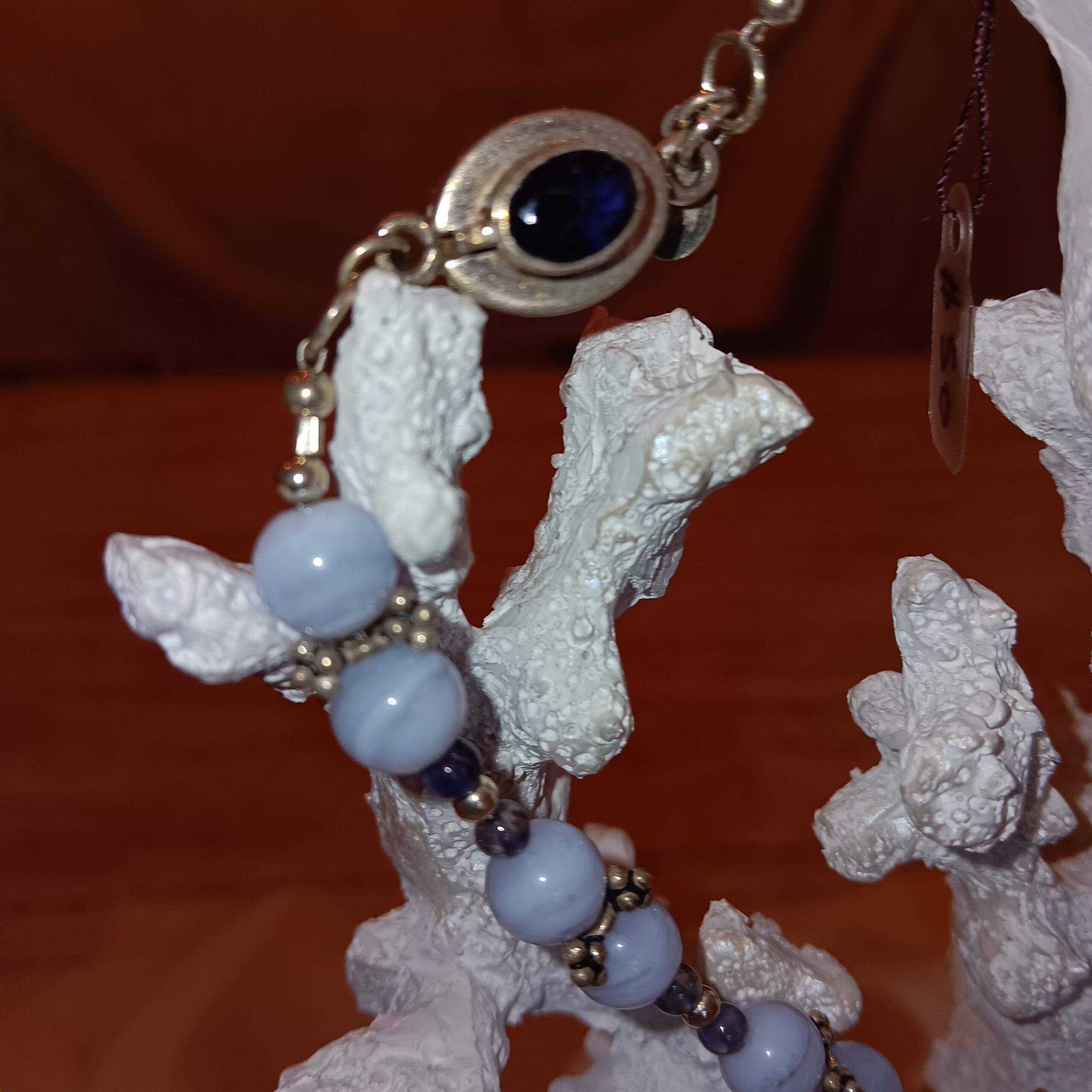 Blue lace agate w/ sterling and Iolite. Created sapphire in clasp accents necklace. Earrings to match $15